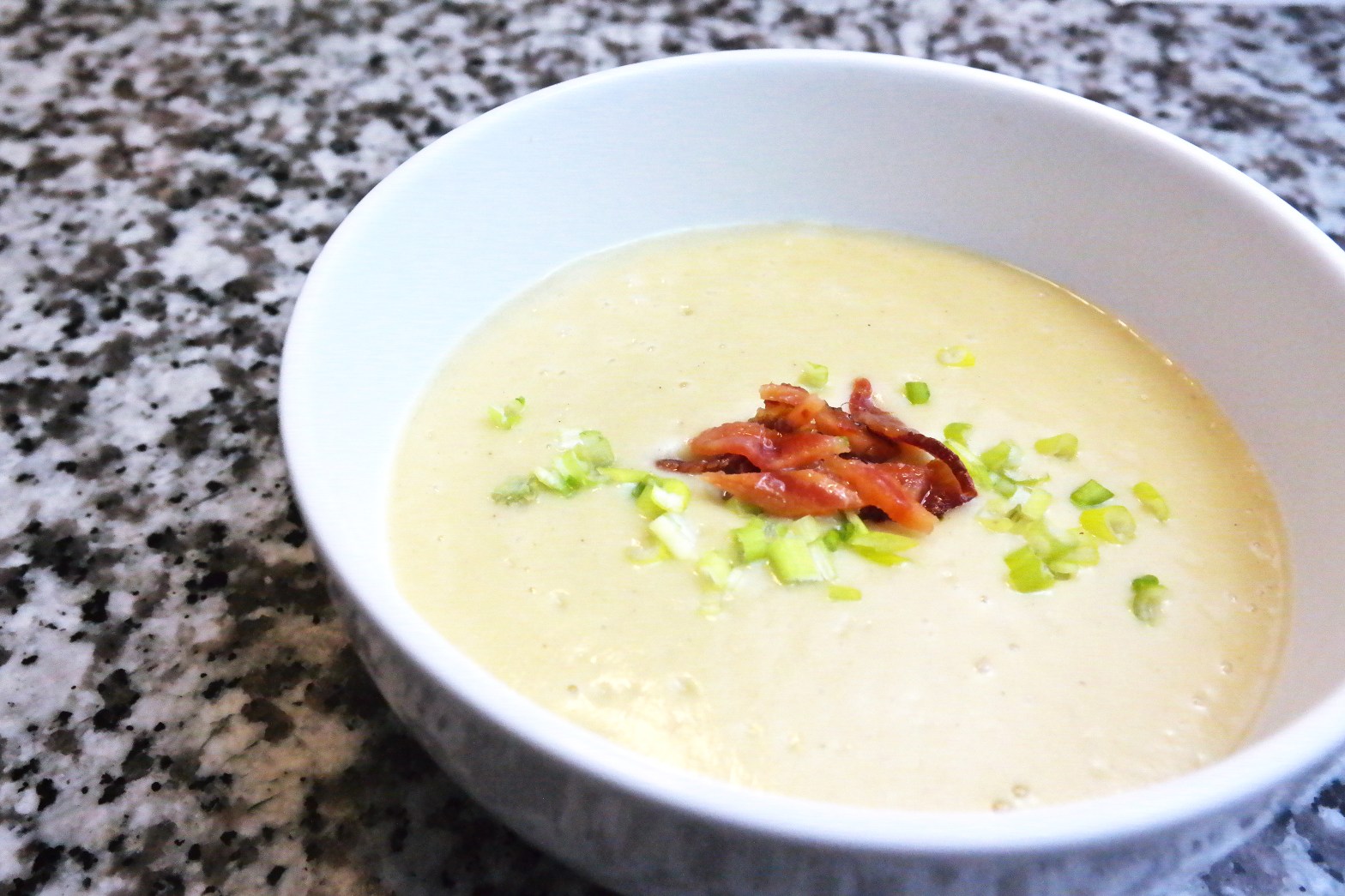 You can now serve and garnish with your favorite topping.  Chives, bacon and croutons work really well with this soup.