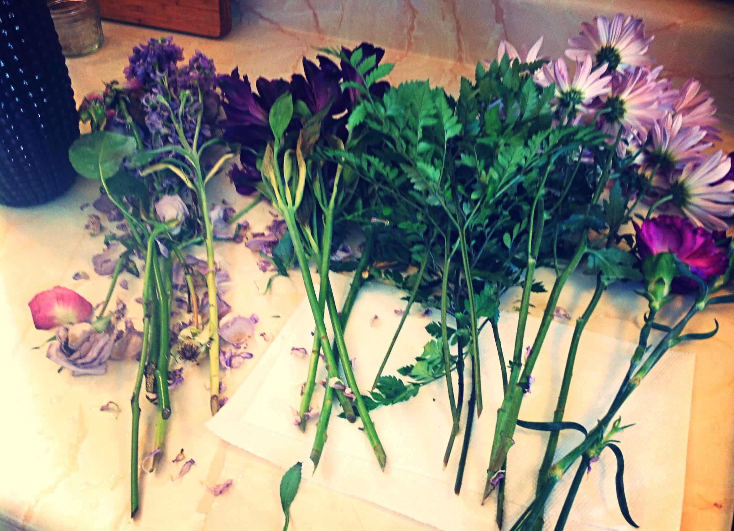 Seperate your flowers in groups and throw away the dead stems.